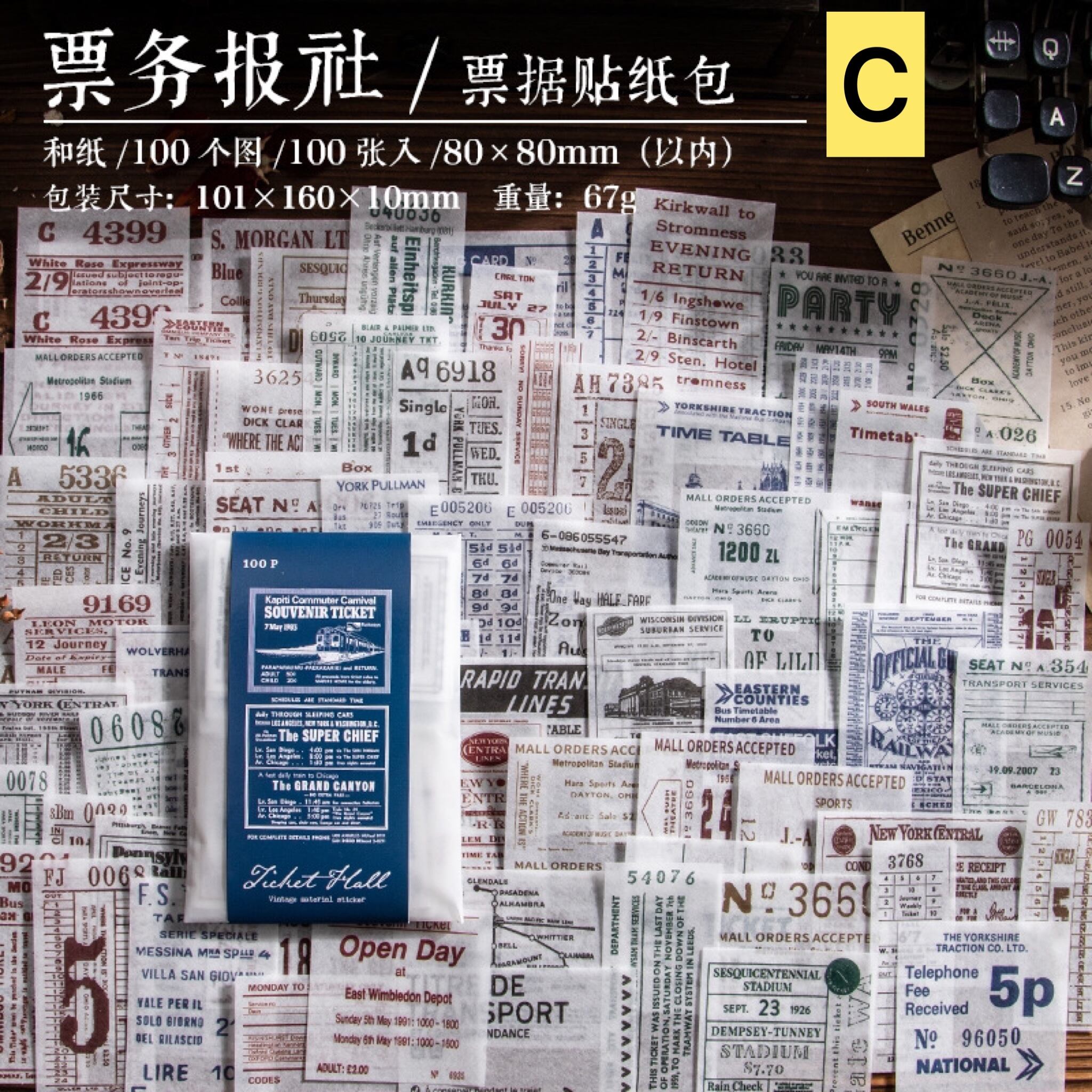 100枚入りレトロアンティーク素材ステッカー